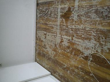 | Wie man gut sehen kann wurde der alte Bodenbelag mit handelsüblichen Teppichkleber angebracht.