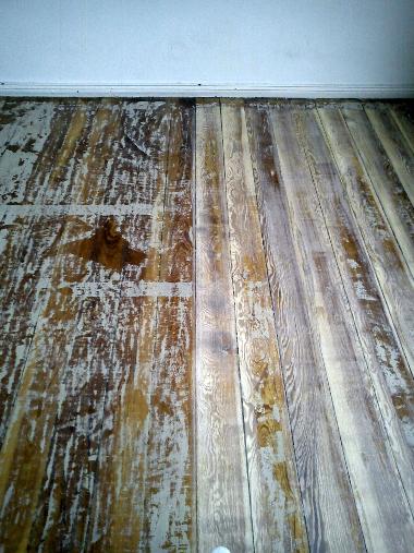 Alter Dielenboden nach dem Entfernen des Teppich´s.